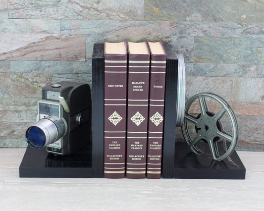 Vintage 16mm Camera Bookends - Keystone Model A7- DVD Holder - Movie Theater Décor - Movie Maker gift - Actor gift - Actress gift