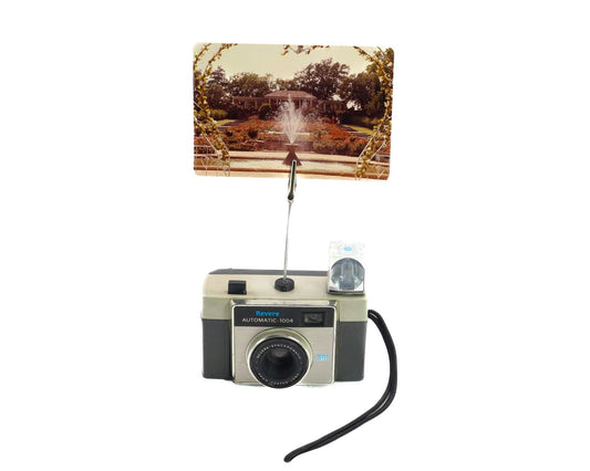 Vintage Camera Photo Holder, Kodak Pocket Instamatic 608 Camera, travel-themed wedding décor, memo and place card holder