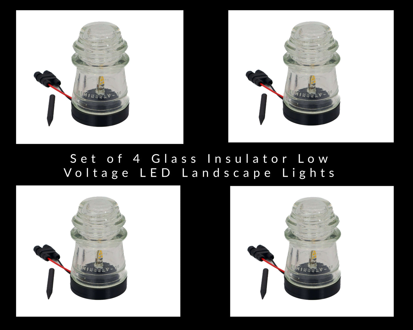 Set of 4 Hemingray-17 Glass Insulator Low Voltage LED Landscape Lights