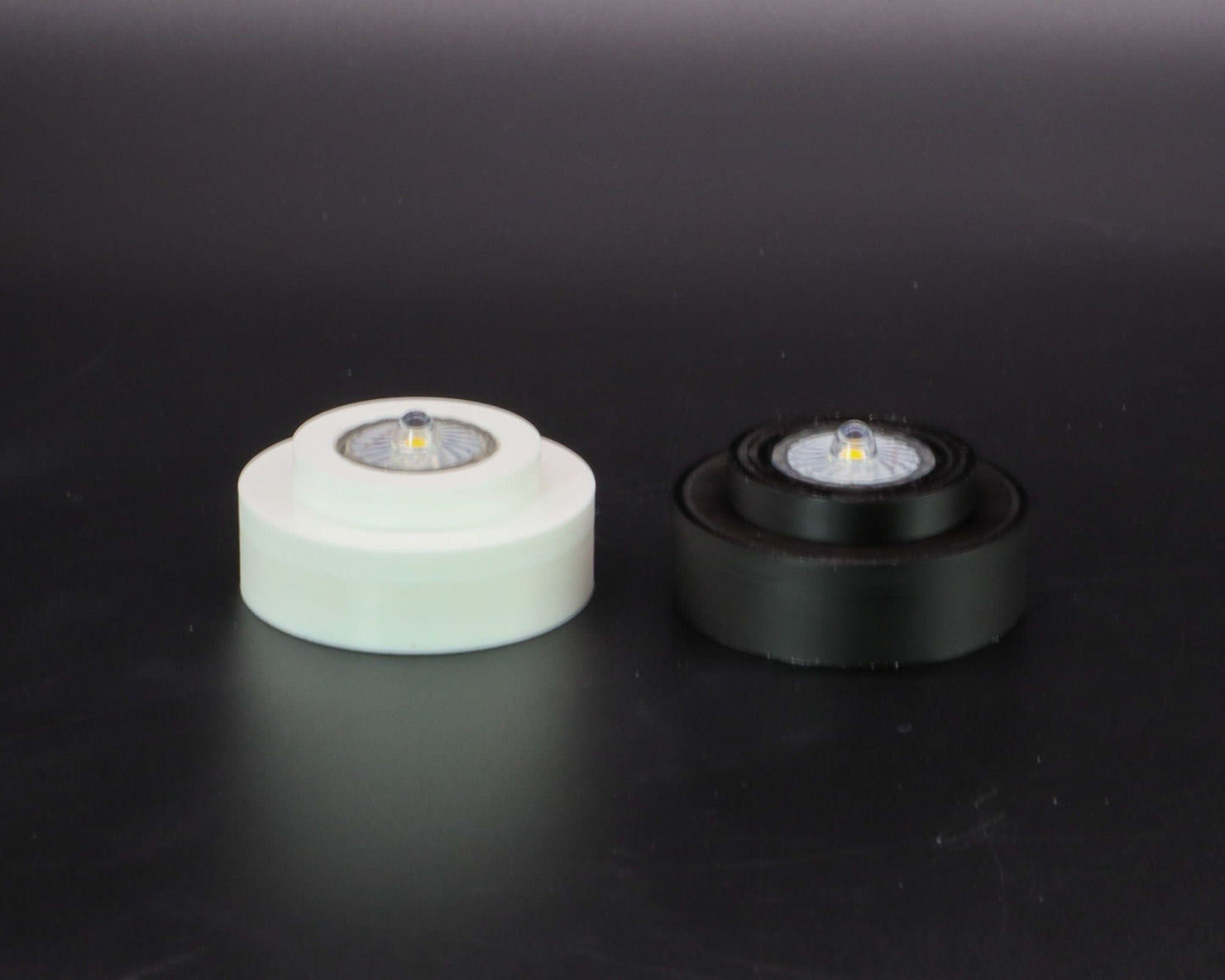 The base is using a battery operated waterproof flameless LED light, available in different solid colors, and in an automatic color changing version, and 2 different base colors (white or black).