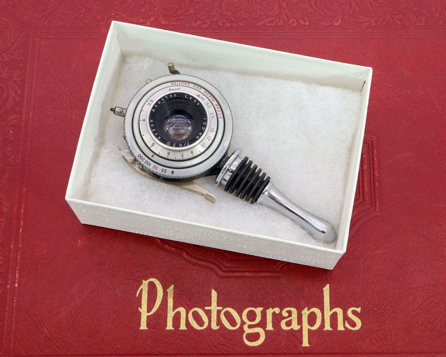 This is one of the most amazing Chrome bottle stoppers with a Vintage Camera Lens.
