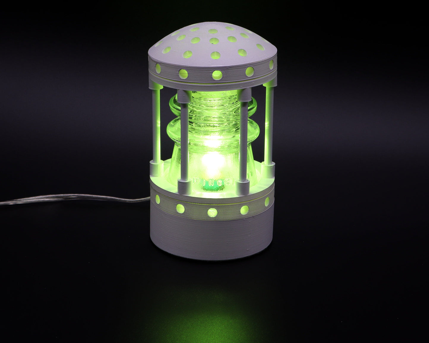 And is available in 4 different LED colors and with a clear or aqua/green Hemingray 16/17 glass insulator.