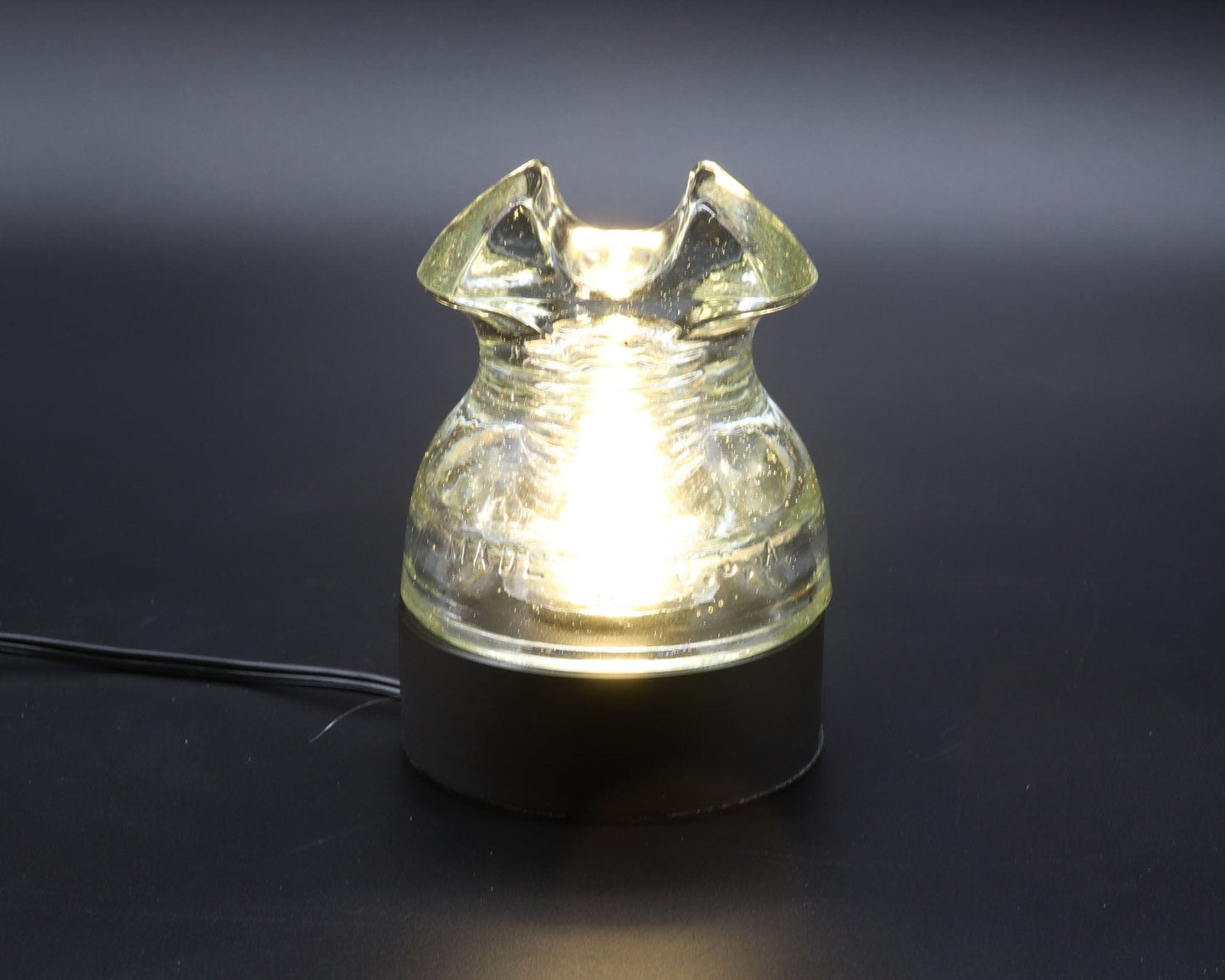 This minimalistic, contemporary lamp base fits the following glass insulators: