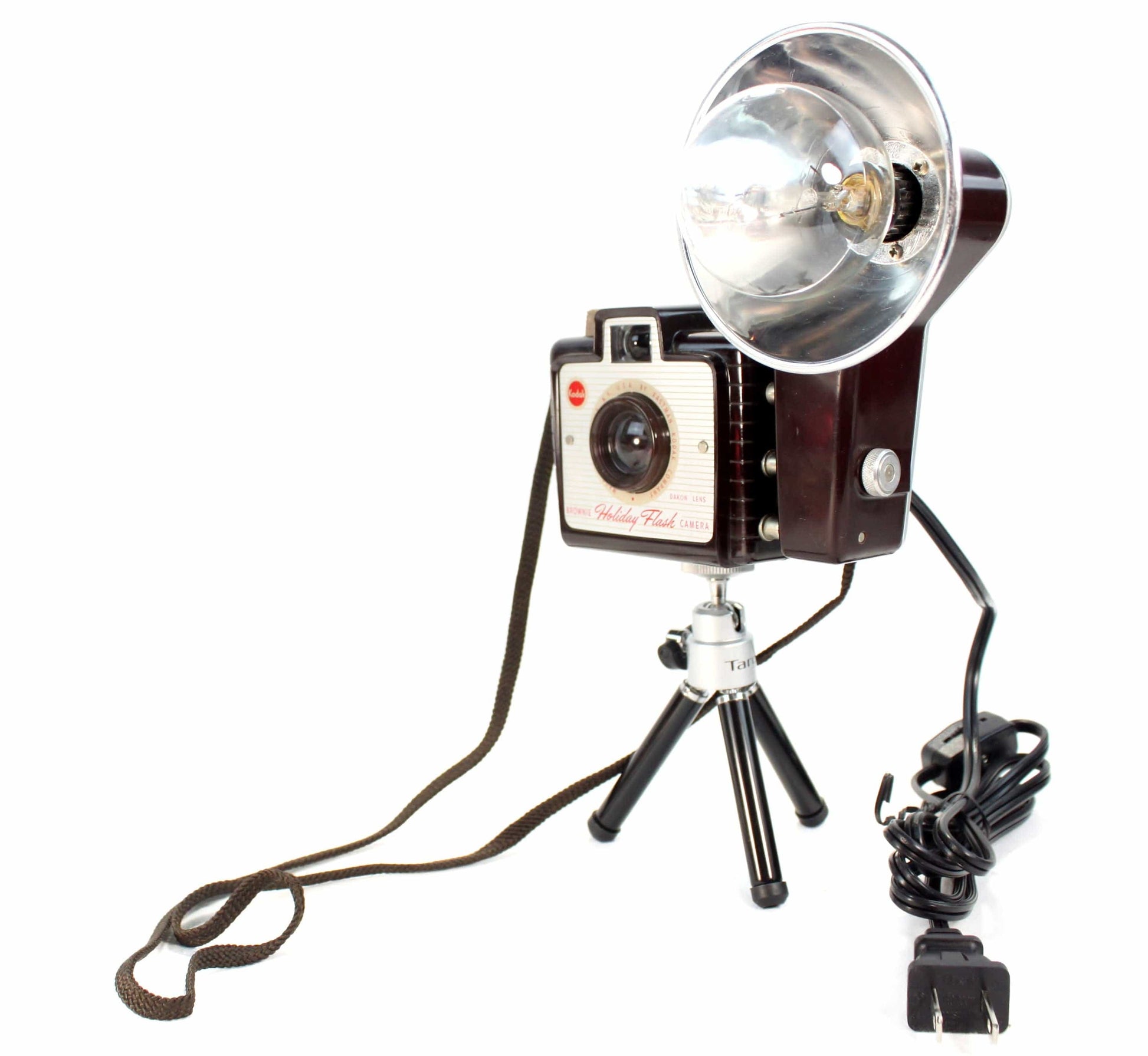Illuminate your space with history, warmth, and character. Add the Vintage 1950's Brownie Holiday Flash Camera Lamp by LightAndTimeArt to your collection and relive the magic of vintage photography every day. Embrace the past and light up your future with this exceptional work of art.