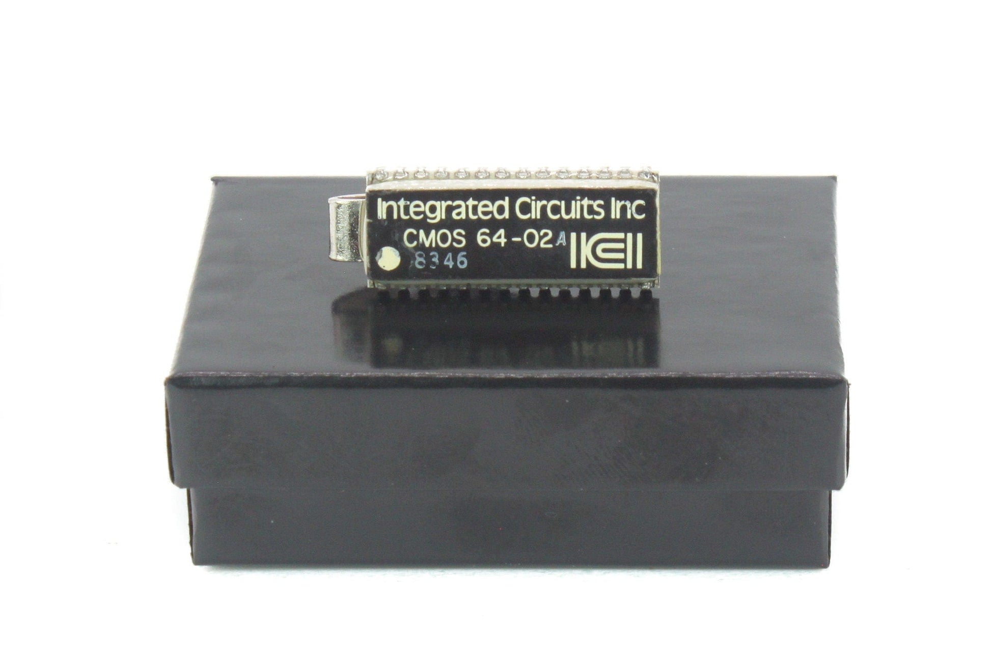 Original Integrated Circuit Inc. CMOS 64-02 Memory chip (made ~1980) transformed into a beautiful and unique Tie Bar or Tie Clip.