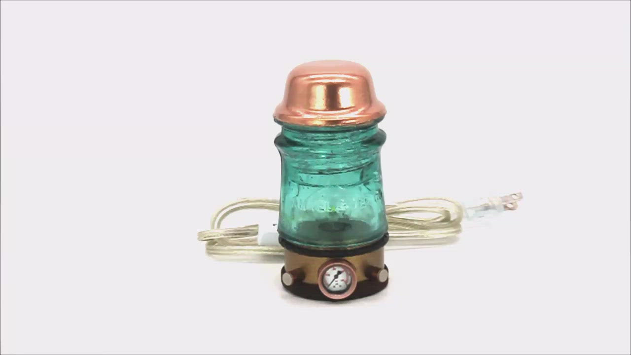 Steampunk Turquoise Glass Insulator Lamp, Aluminum Base, Industrial Lighting, Man Cave Deco, Neo Victorian Cyberpunk Lamp