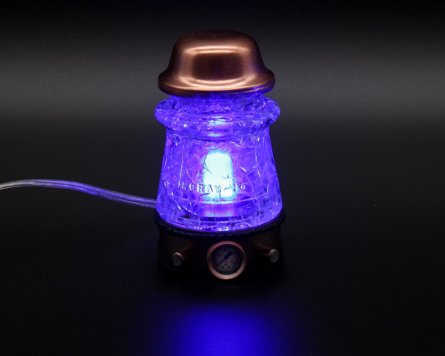 Steampunk “Crackle Glass" Insulator Lamp, Aluminum Base, Hemingray-16, Industrial Lighting, Man Cave Deco, Neo Victorian Lamp design, Cyberpunk Lamp