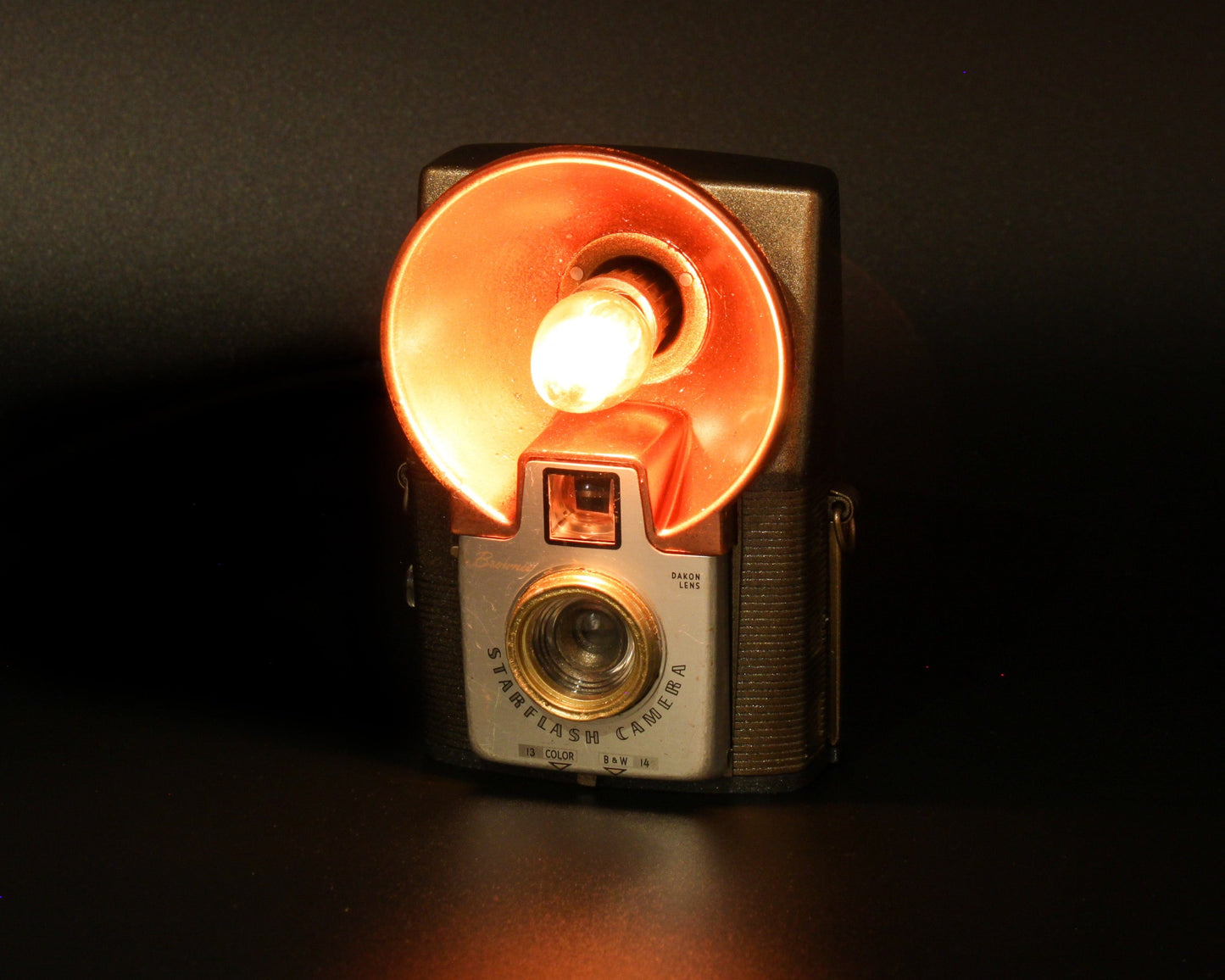 Original Kodak Brownie Starflash Camera – modified into an innovative working steampunk nightlight.