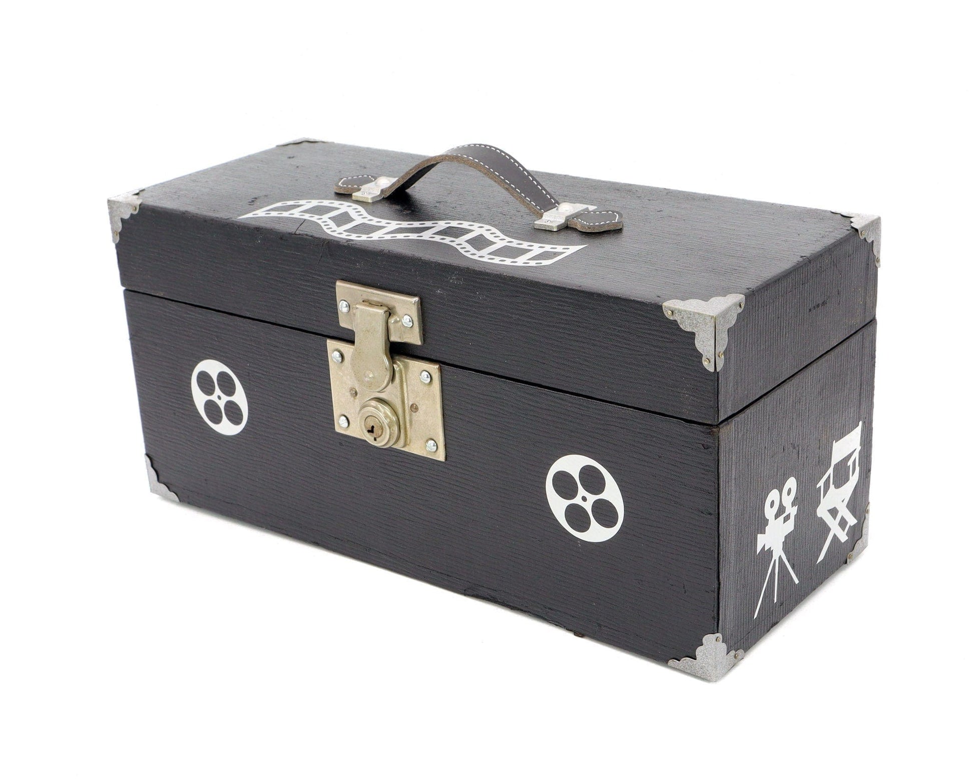 This attractive vintage black candy storage box with classic movie décor decals, keeps your popcorn and candy essentials in one convenient place.