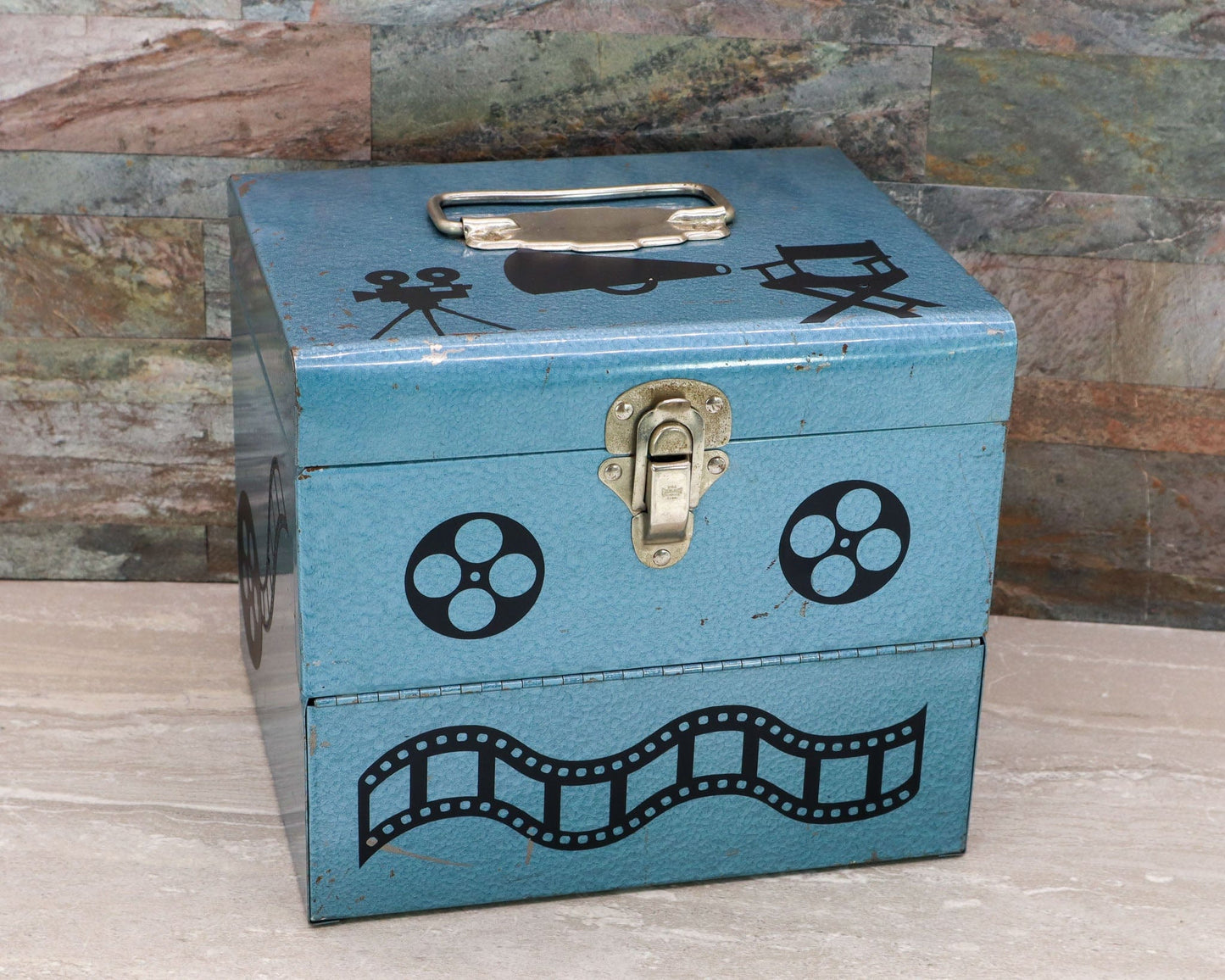 Vintage 8 MM Large Movie Metal Carrying Cases, Movie Night, Candy Store , Sweet treasure box, Movie Room Décor