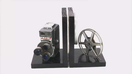 A LightAndTimeArt set of bookends is the perfect accessory for any book or DVD collection, be it small or large. These simple yet effective accents not only keep your novels and DVDs from tipping over, but they also add character with a wide range of designs, styles, and colors. All my bookends are elegant, and unique, while they can keep a home book or DVD library looking uniform and neat. They all use a combination of vintage photo, or film equipment and accessories making them great way to complement a movie room or home theater.