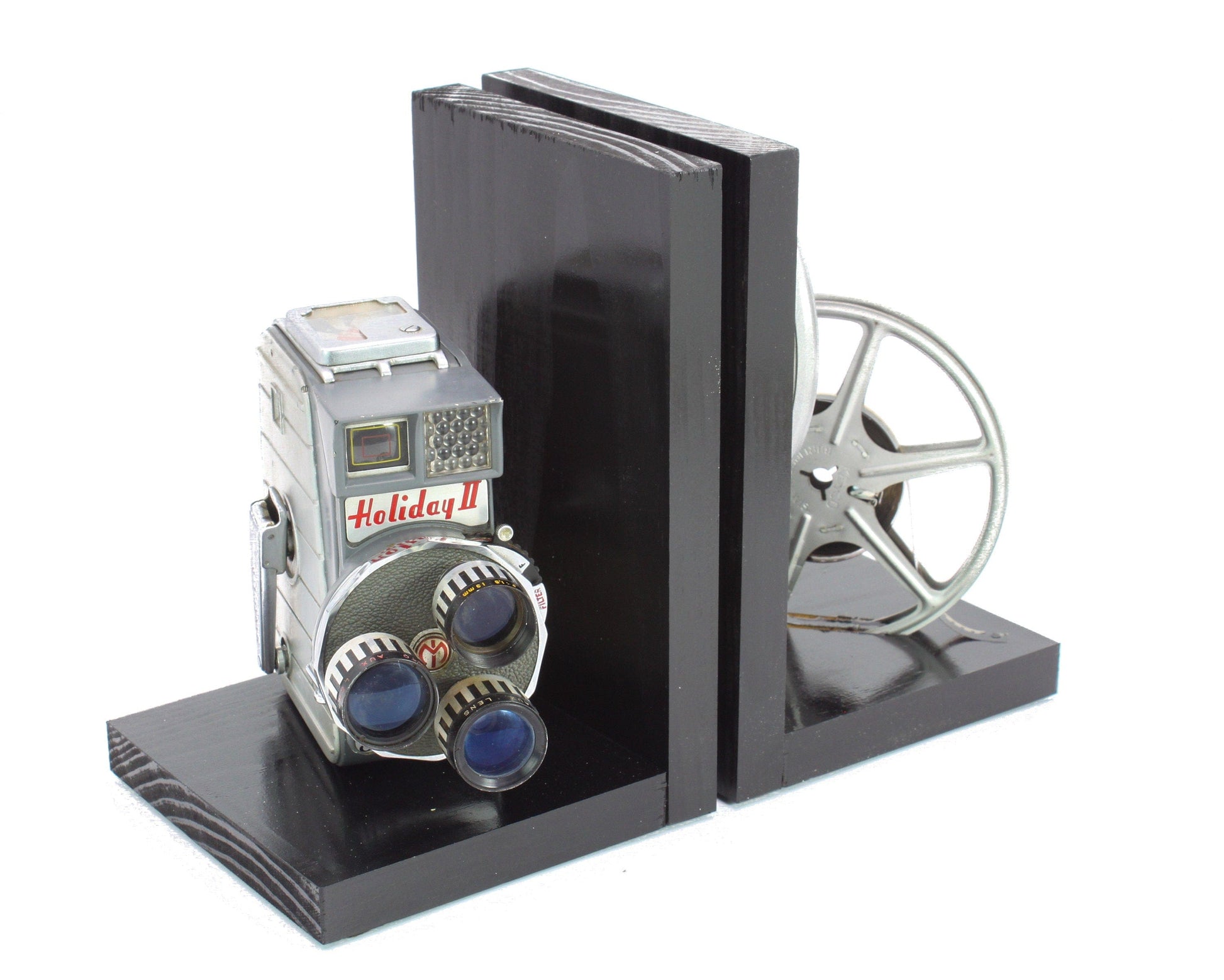 Introducing Handmade Vintage Mansfield Holiday II Triple Turret 8mm Camera Bookends by LightAndTimeArt