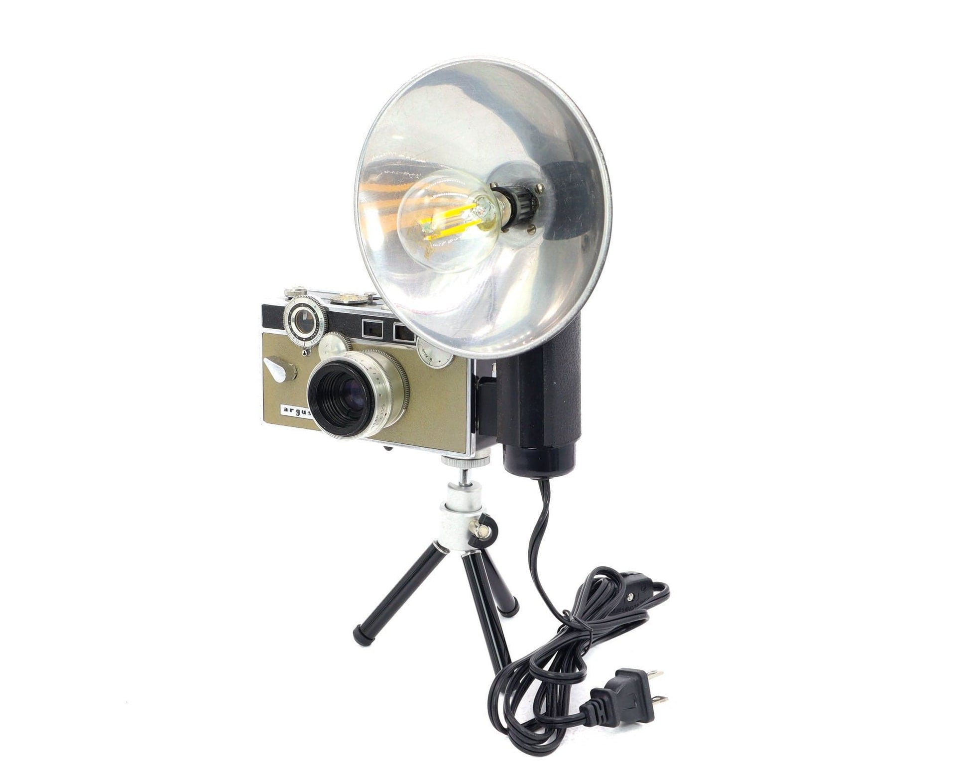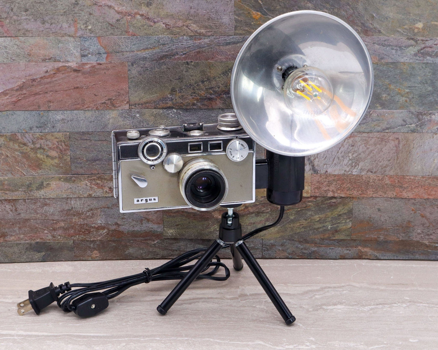 🔶Unparalleled Craftsmanship: Meticulously upcycled by our skilled artisans, this classic camera has been transformed into an exceptional piece of functional art. The vintage camera body has been thoughtfully repurposed, complete with a flash attachment, into a stunning lamp. It rests elegantly on a mini tripod, showcasing both its historical significance and contemporary design sensibilities.