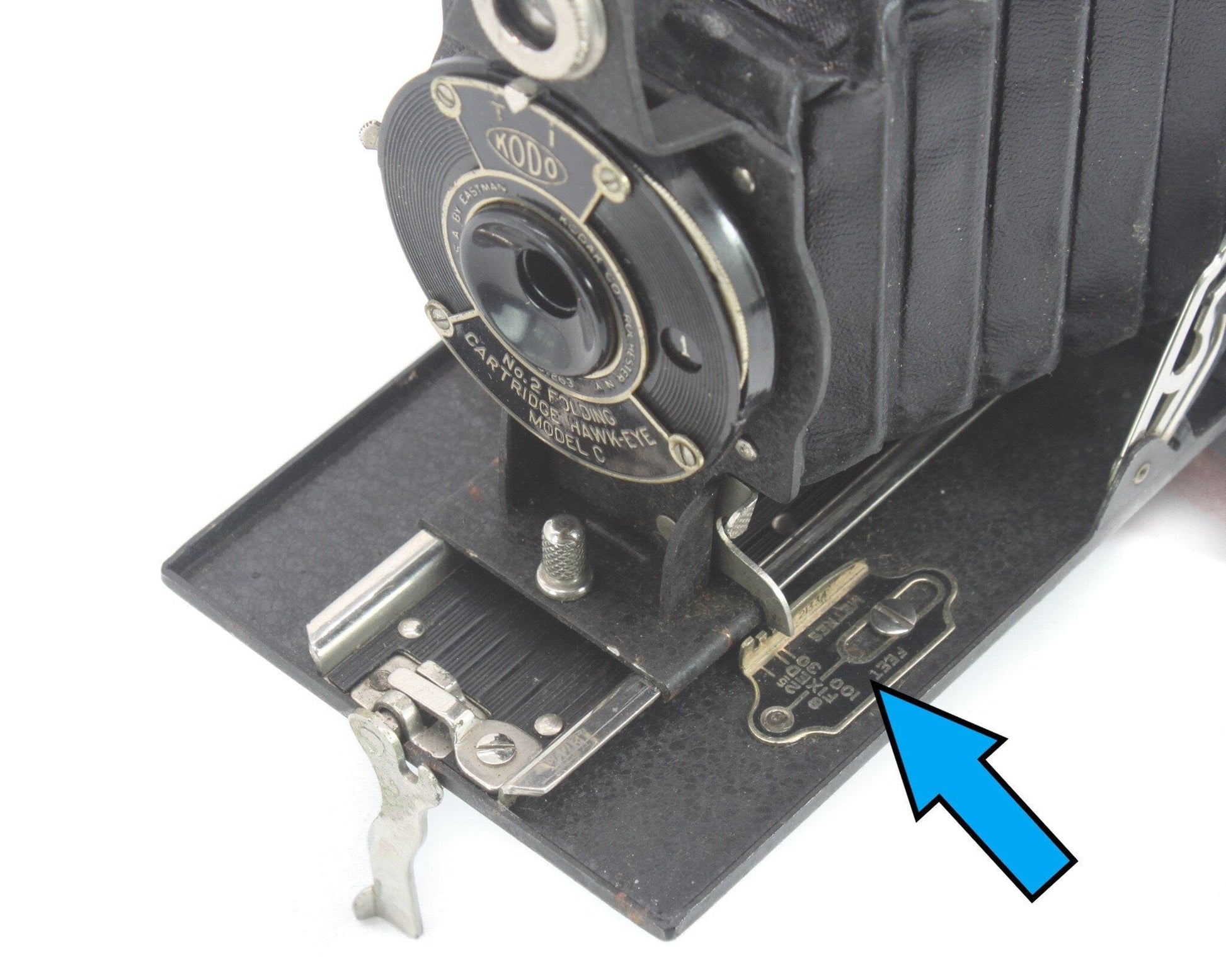 Our Original Vintage Kodak Folding Camera Index Plates have been carefully sourced from classic single extension folding bed cameras used for roll film photography during the late 19th and early 20th centuries. Each plate boasts a focusing scale in both feet and meters, a subtle nod to the rich history of photography.