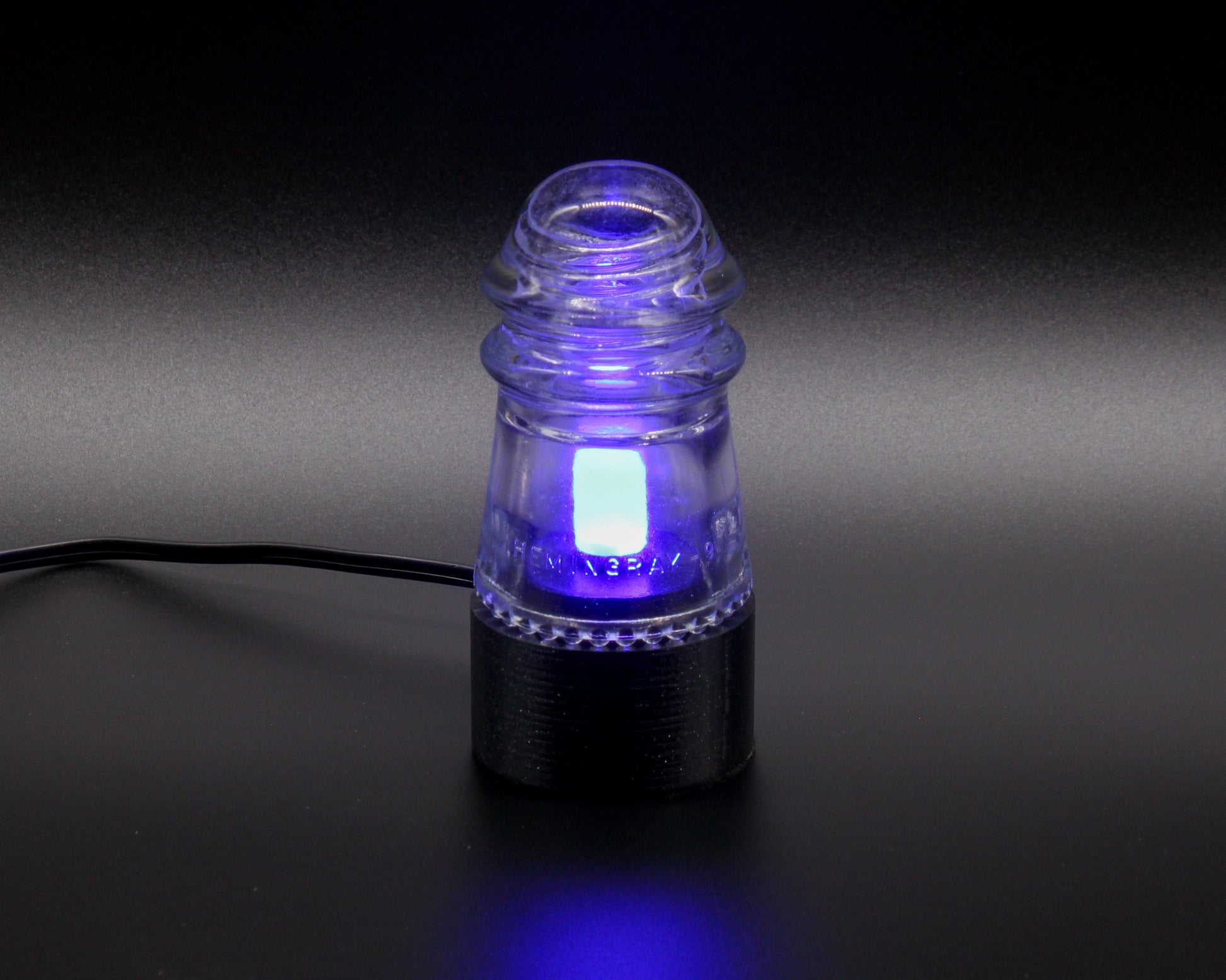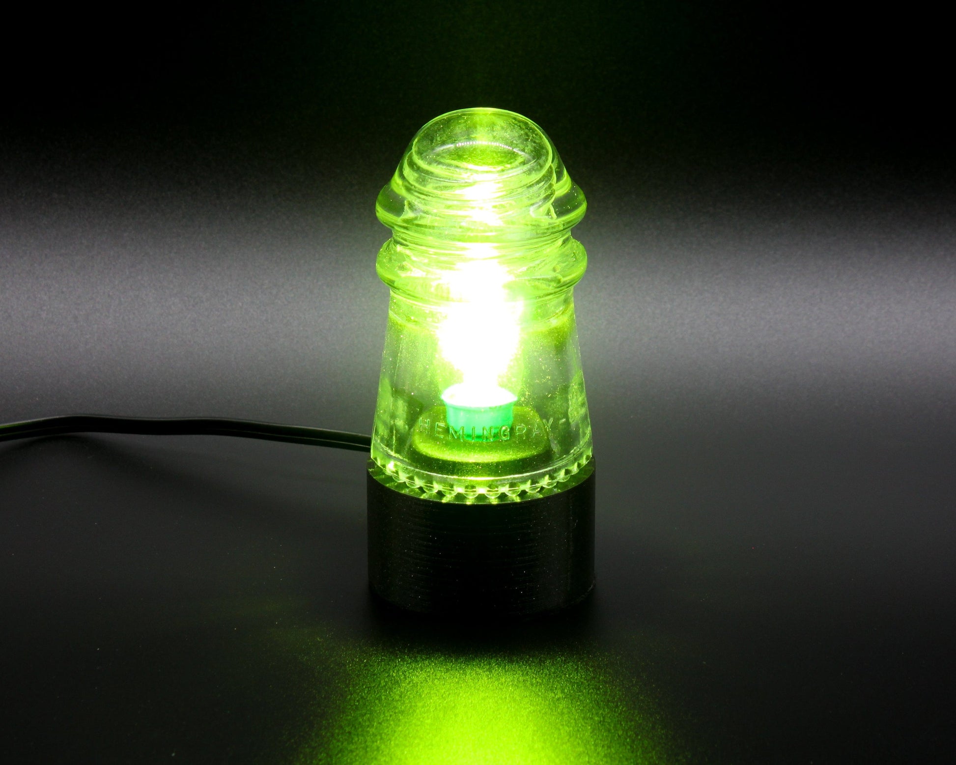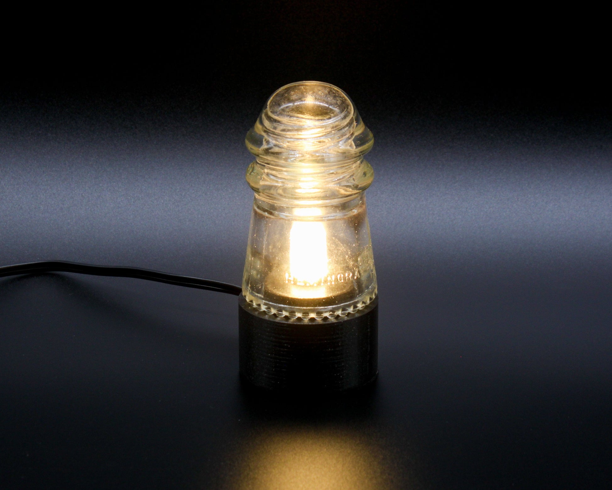 - This lamp includes a base and a clear Hemingray-9 glass insulator.