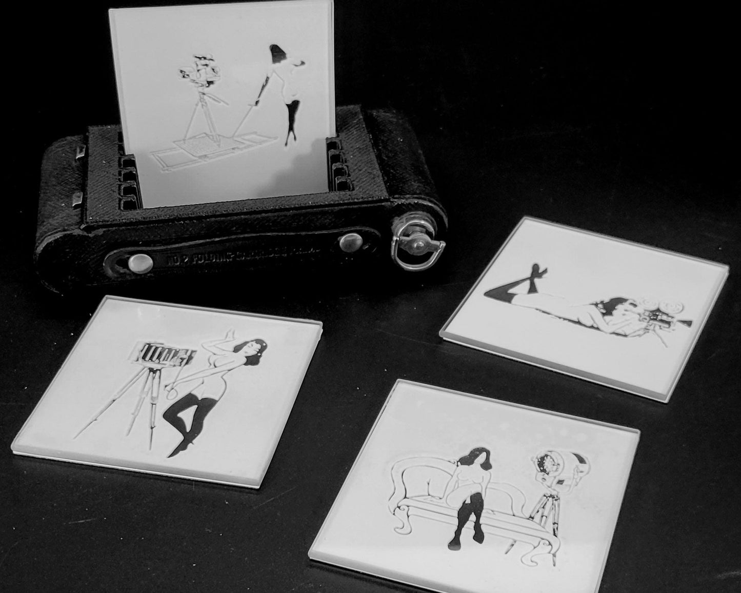This unique coaster -set makes a great gift for the photographer, film maker, or vintage art lover.