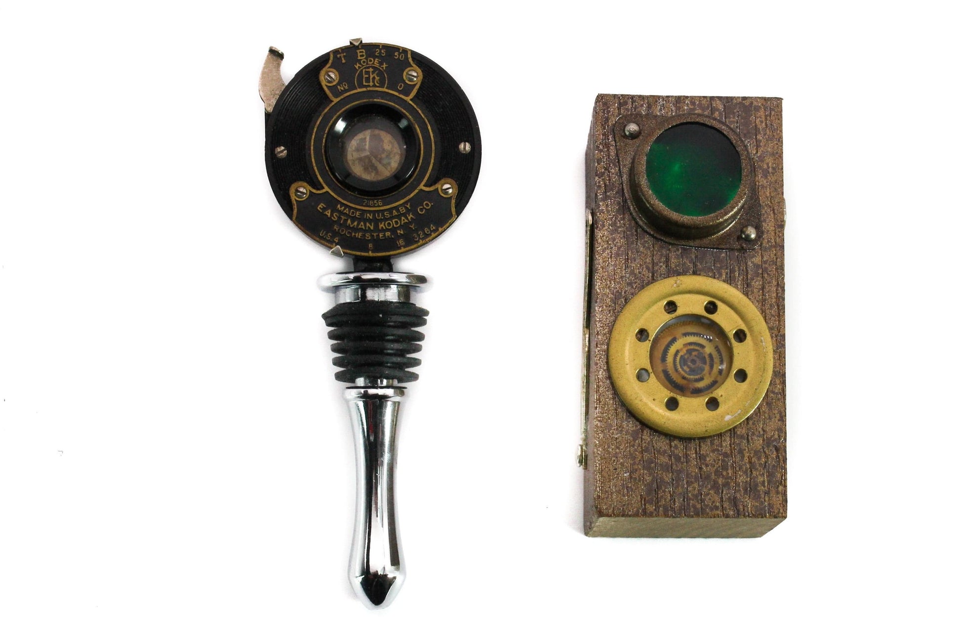 The creative reuse of old vintage cameras as Barware, Bluetooth speaker, clocks, lamps, or Echo Dot Holder puts these old design icons back in the hands of people, out of dark basements and attics. The beauty of the steampunk design pieces is their versatility β you can treat them as feature piece or liberally use them throughout any contemporary space.