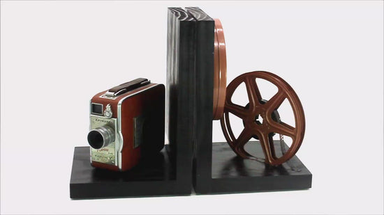 A LightAndTimeArt set of bookends is the perfect accessory for any book or DVD collection, be it small or large. These simple yet effective accents not only keep your novels and DVDs from tipping over, but they also add character with a wide range of designs, styles, and colors. All my bookends are elegant, and unique, while they can keep a home book or DVD library looking uniform and neat. They all use a combination of vintage photo, or film equipment and accessories making them great way to complement a movie room or home theater.